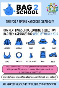 Our next clothing collection has been arranged for Wednesday 18th March 2026, at the Village Hall.